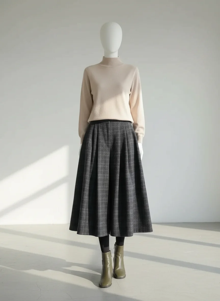 Les coupes larges offrent une liberté de mouvement incomparable tout en conservant une allure sophistiquée. Pour compléter une garde-robe hivernale, un pantalon jupe culotte s’impose comme le choix idéal alliant confort thermique et esthétique intemporelle.