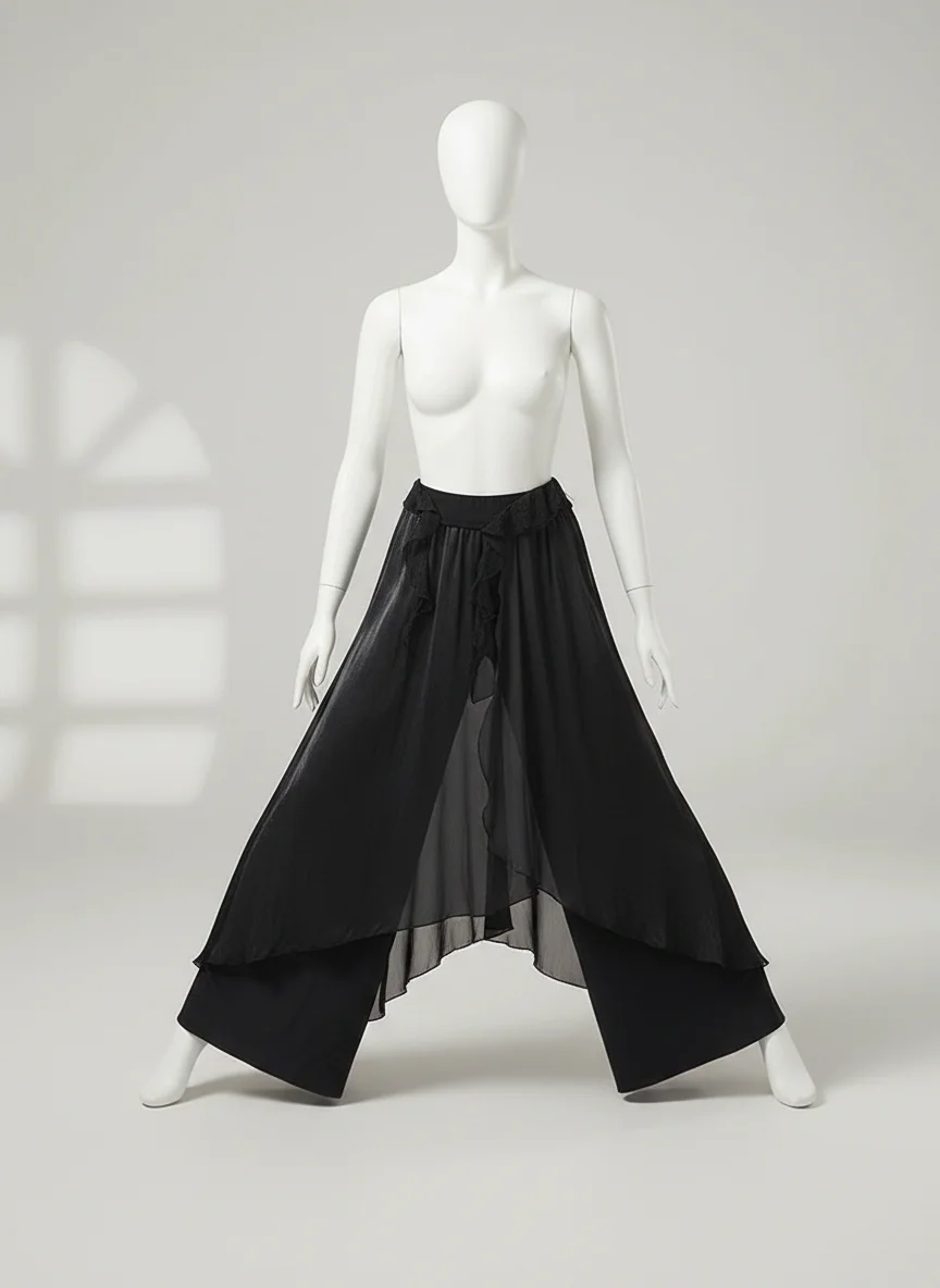Les vêtements de danse exigent une liberté totale et une esthétique raffinée. Le Pantalon jupe offre une superposition fluide qui accompagne les pas avec élégance. Grâce à la légèreté de la mousseline, les mouvements deviennent visuellement spectaculaires lors des représentations ou des entraînements quotidiens.